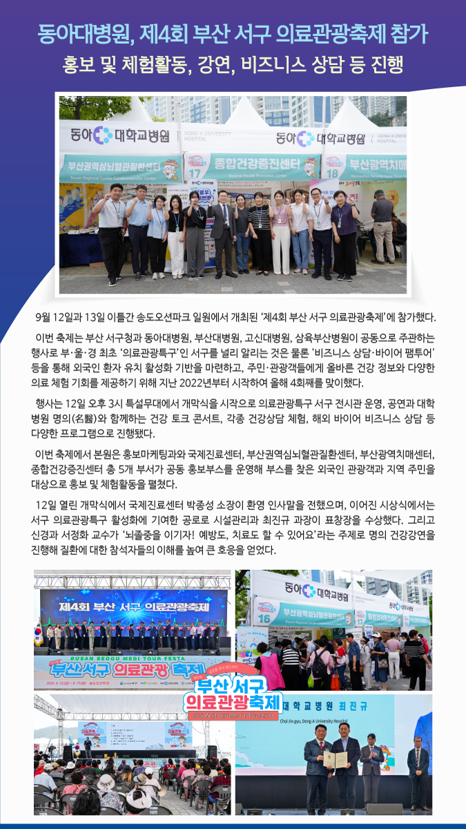 동아대병원, 제4회 부산 서구 의료관광축제 참가