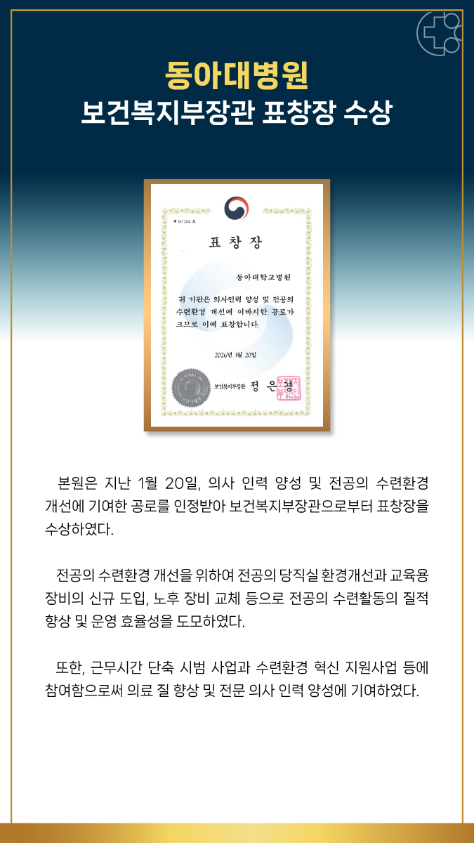 동아대병원, 보건복지부장관 표창장 수상