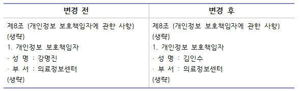 1. 제8조 (개인정보 보호책임자에 관한 사항)