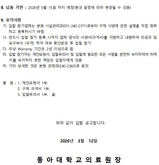 안치냉장고 외 비품 구매 입찰공고